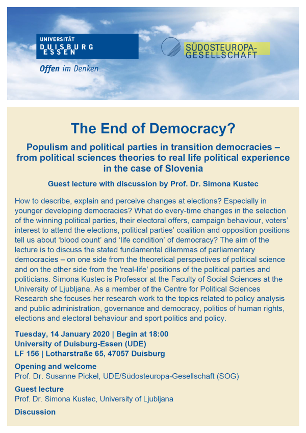 Am 11. Juni hält Dejan Mihajlović einen Gastvortrag zum Thema "Demokratie von unten: Wie serbische Studierende gegen Korruption und Machtmissbrauch mobilisieren". Dejan Mihajlović ist Referent für Schülermitverantwortung, Demokratiebildung, Digitale Transformation und Barcamps am Zentrum für Schulqualität und Lehrerbildung Baden-Württemberg. Der Vortrag findet online über Zoom in deutscher Sprache statt. Eine vorherige Anmeldung zur Teilnahme ist erforderlich. Den Flyer zu der gemeinsamen Veranstaltung mit dem Institut für Politikwissenschaft finden Sie hier.