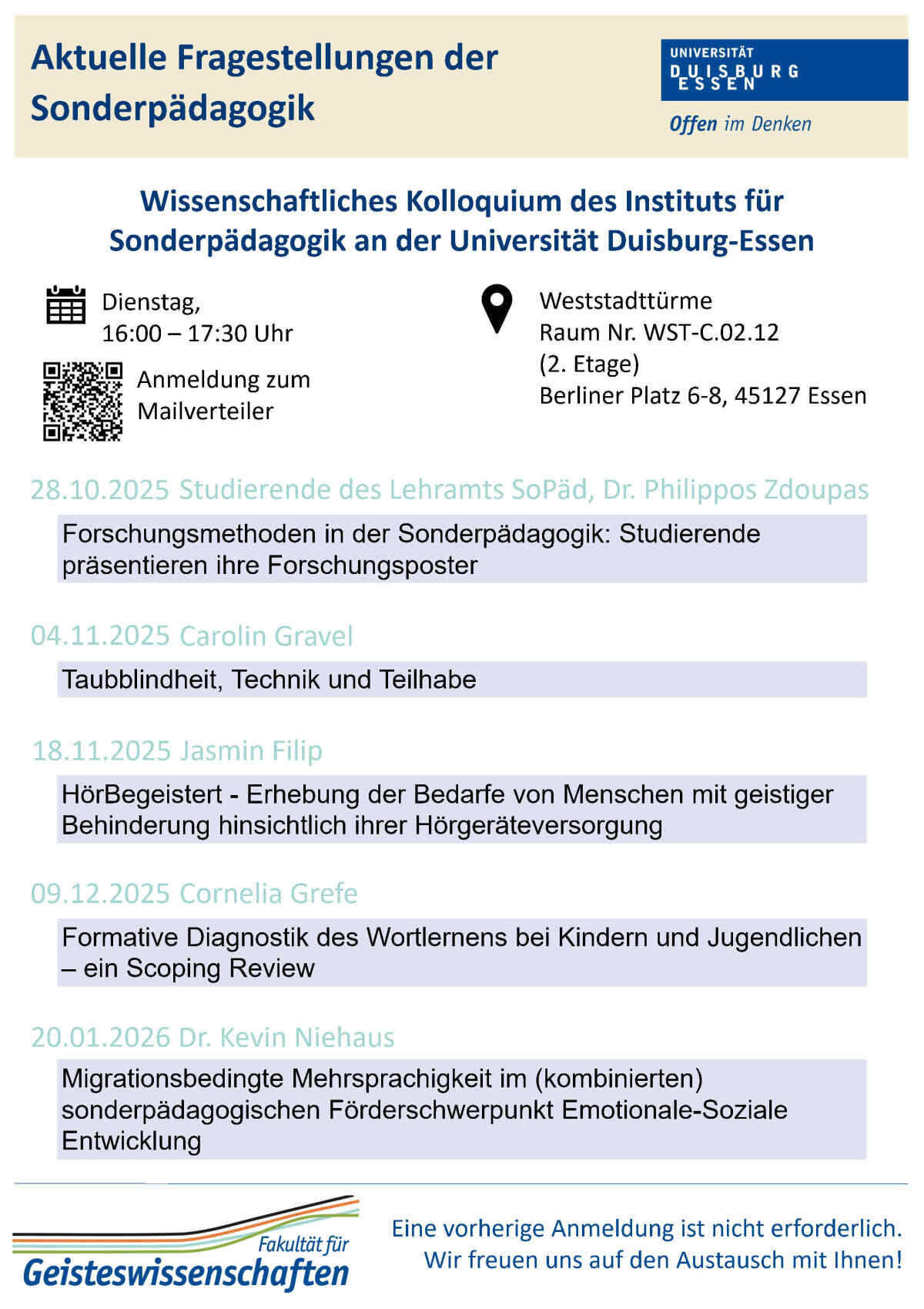 Stand 26.11.2025Wissenschaftliches Kolloquium des Instituts für Sonderpädagogik
