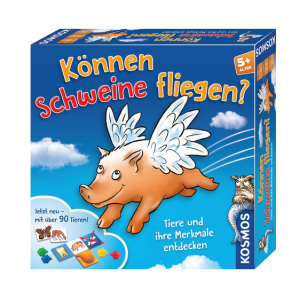 Sie lernen über 92 Tiere kennen. Das logische Denken und das Kombinieren sowie eine schnelle Reaktion werden durch das Spiel gefördert. Dabei kommt der Spaß bei „Können Schweine fliegen?“ nicht zu kurz.