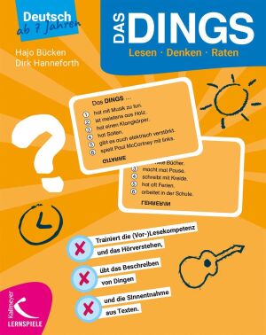 Ein tolles Ratespiel zu zweit oder in Gruppen: Ein Spieler liest sechs Hinweissätze einer Karte vor, die anderen versuchen, das versteckte Wort zu erraten. Die Spieler lernen so, wie Dinge umschrieben und charakterisiert werden.