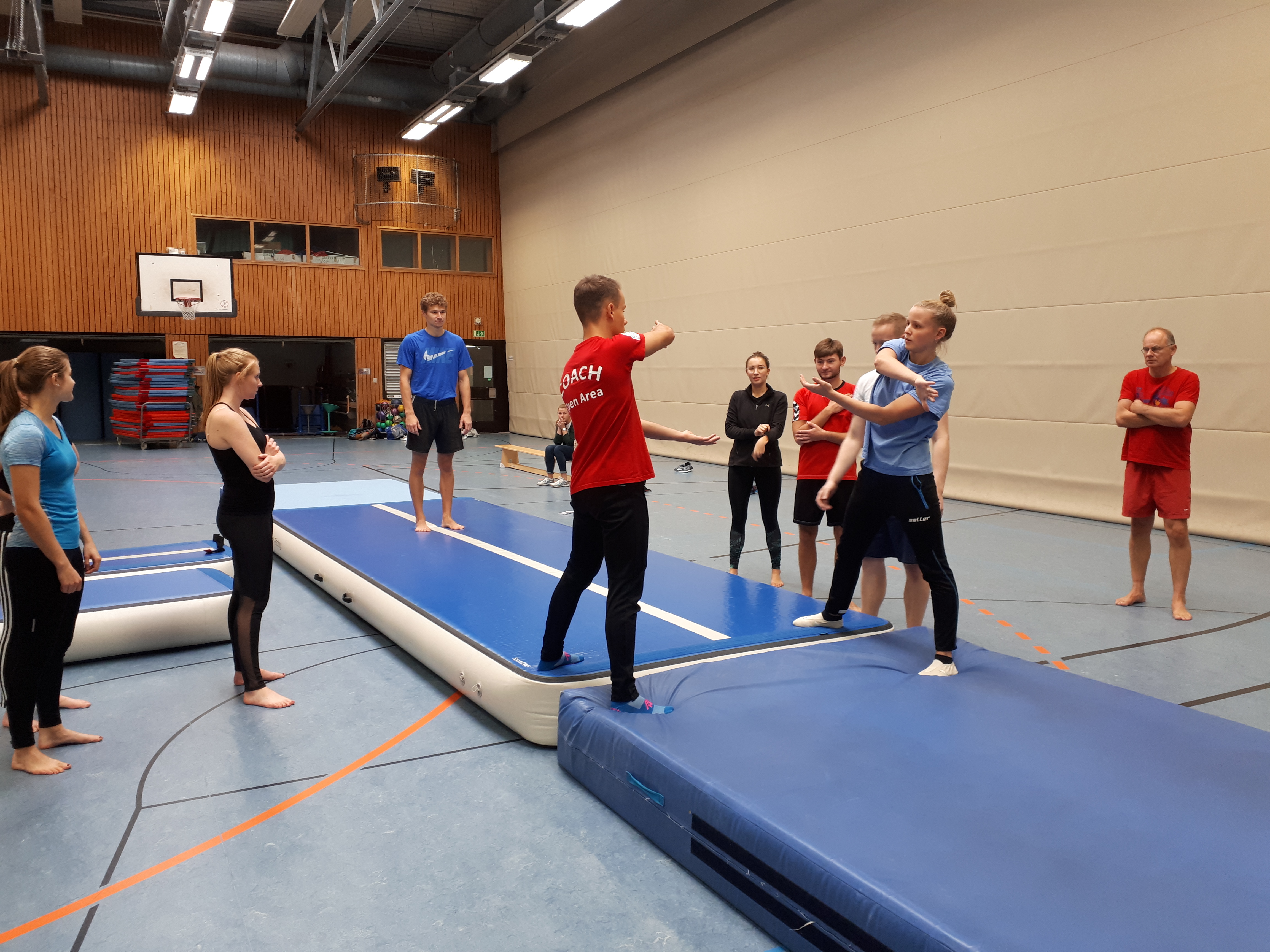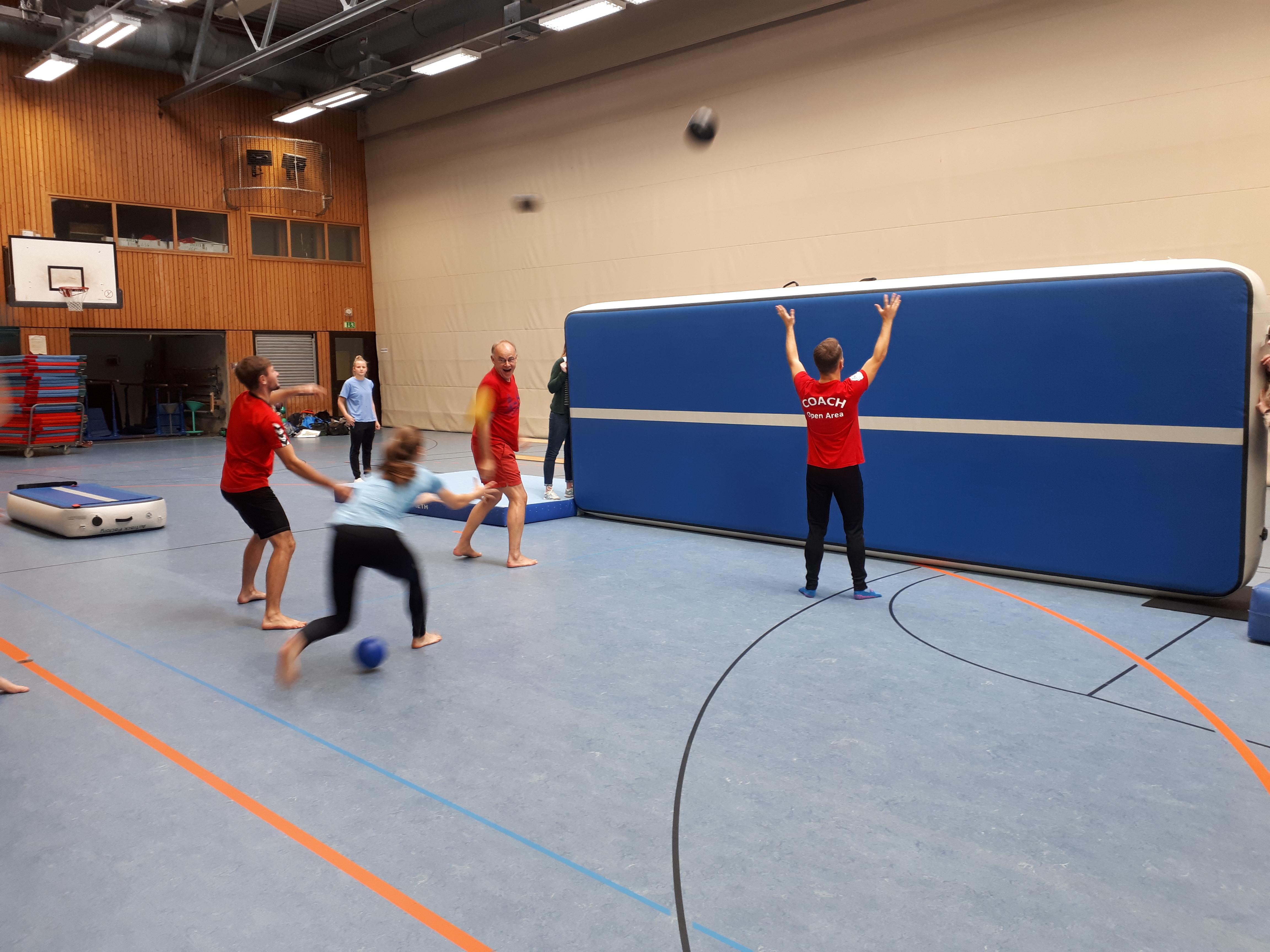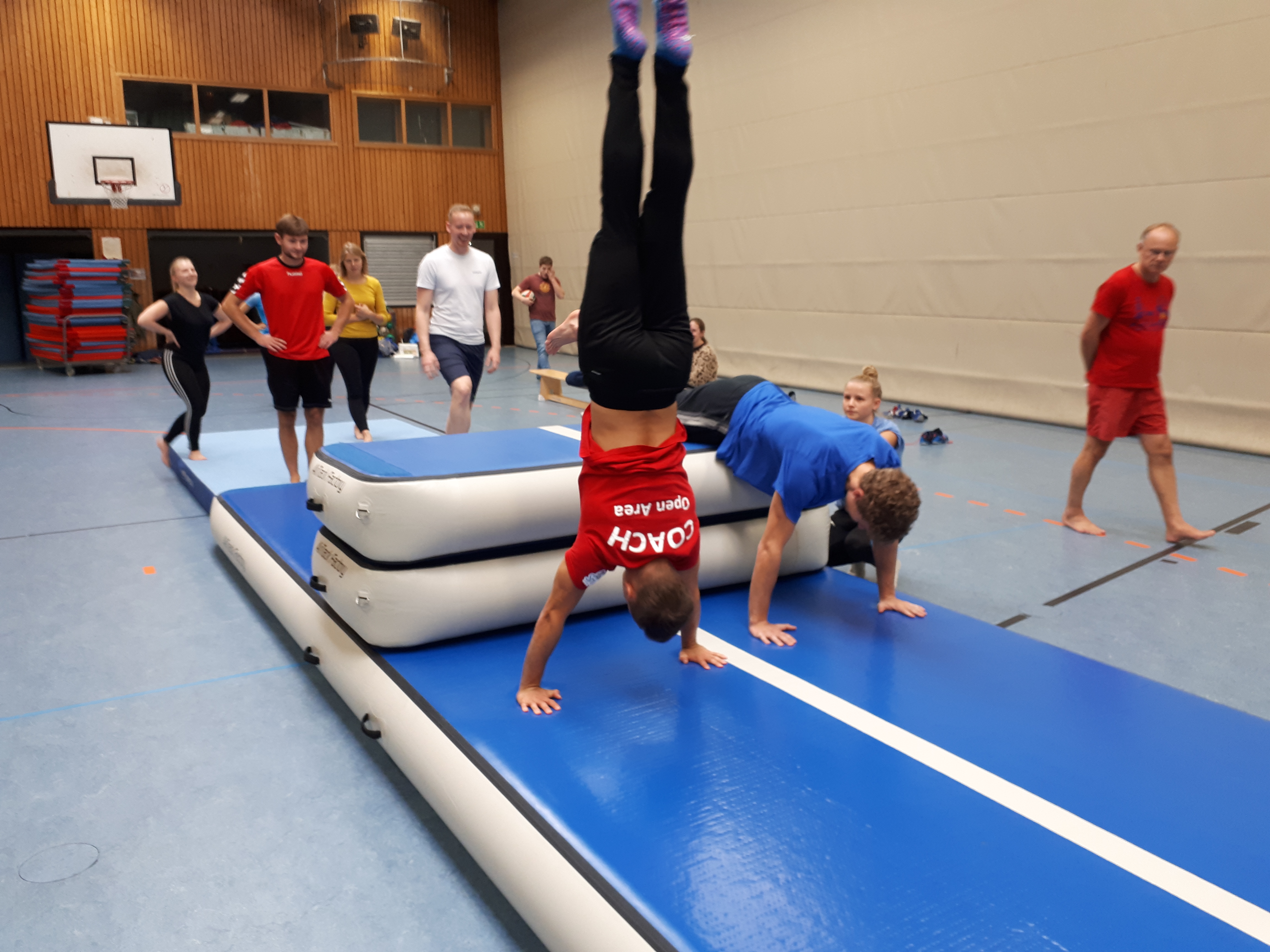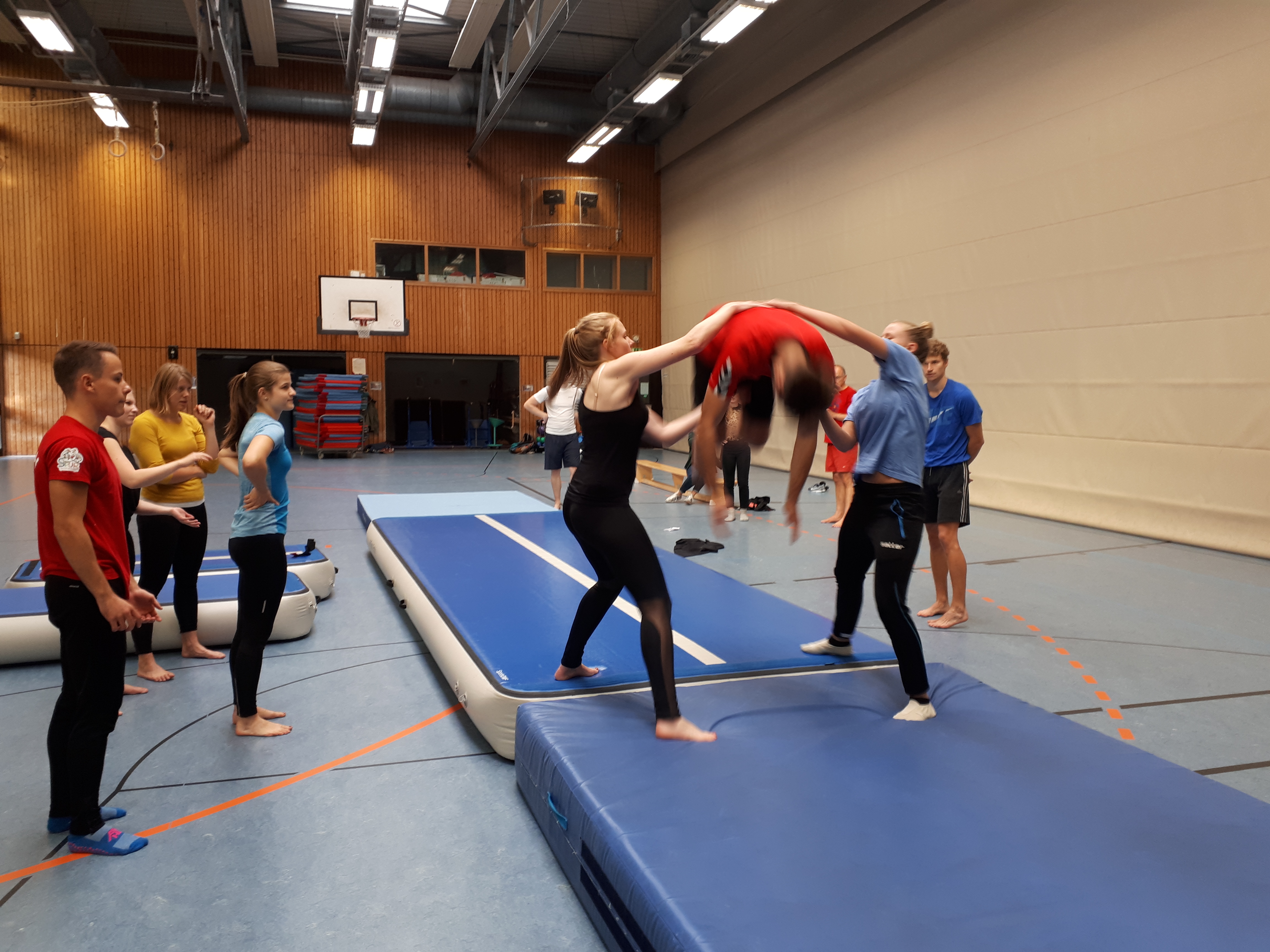 Am 10.10.2019 fand am Sportinstitut ein Workshop zu den Einsatzmöglichkeiten eines AirTracks statt. Das AirTrack ist ein luftgefülltes Kissen, welches vielfältig als methodische Lernhilfe für Kinder und Jugendliche eingesetzt werden kann. Die federnde Wirkung des Sportgerätes unterstützt das Abspringen, wodurch deutlich höhere Sprunghöhen erreicht werden können. Somit erleben sowohl Anfänger*innen als auch Fortgeschrittene schnell Erfolgserlebnisse und können sich auch an neuen Bewegungsformen erproben.