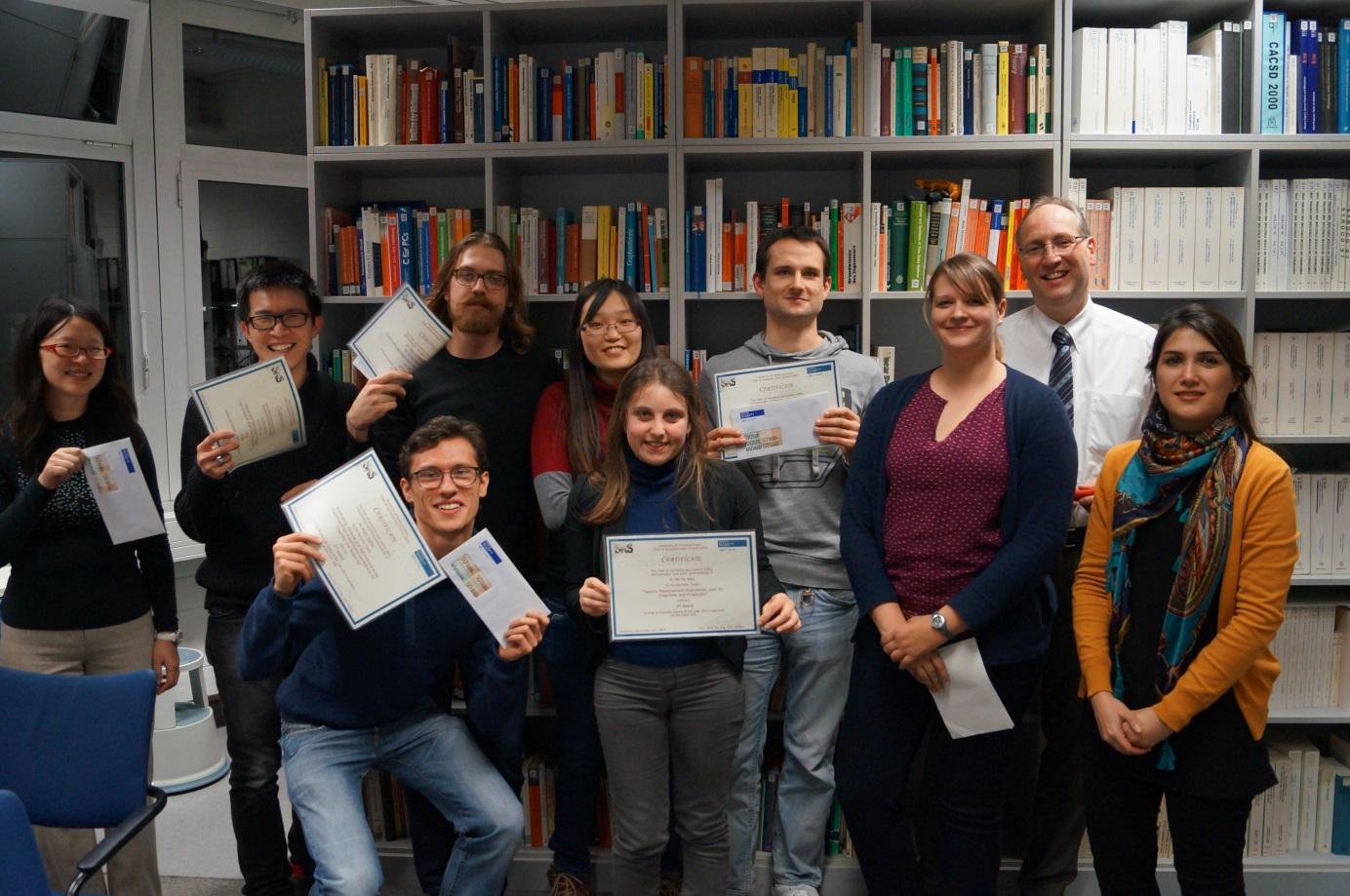 Die technikbegeisterten Schüler konnten verschiedene Anwendungen, wie mobile Roboter, ein invertiertes Pendel, einen großen Hydraulikzylinder etc. mit eigenen Augen und Händen erfahren, erproben und erleben. Darüber hinaus galt es, den Schülern ohne die entsprechenden mathematischen Vorkenntnisse die Grundlagen der Dynamik zu vermitteln. Nach dem sehr positiven Echo von Seiten aller Beteiligten wird der Lehrstuhl die Kooperation mit den Ingenierinnen und Ingenieren der Zukunft fortsetzen. |