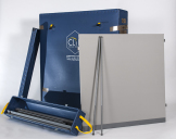 Das Posterwand-System CLIP wird in mobilen Containern (B x H x T = ca. 120 cm x ca. 130 cm x ca. 40 cm) geliefert.