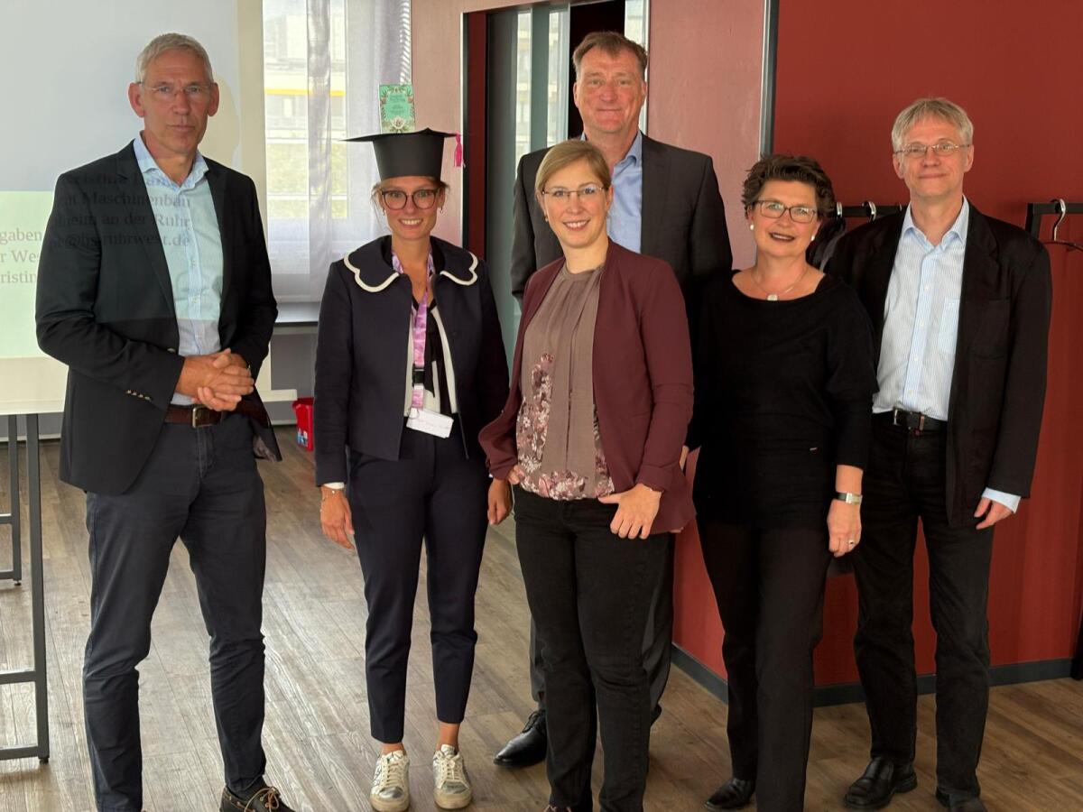 Am 22. September 2025 fand die Disputation der Dissertation "Entwicklung, Implementierung und Evaluation eines Strategietrainings zur Förderung mechanisch-mathematischer Modellierungskompetenz von Studierenden ingenieurwissenschaftlicher Studiengänge beim Lösen von Statikaufgaben" von Frau Kristina Lampe statt. Unter dem Vorsitz von Prof. Dr. Eugen Perau, den Gutachtern Prof. Dr. Martin Lang und Prof. Dr. Alexandra Dorschu sowie der Prüferin Prof. Dr. Natalie Stranghöner und dem Prüfer Prof. Dr. Stefan Fletcher wurde Frau Lampe erfolgreich promoviert. Wir gratulieren Frau Dr. Kristina Lampe zu ihrer Promotion.
