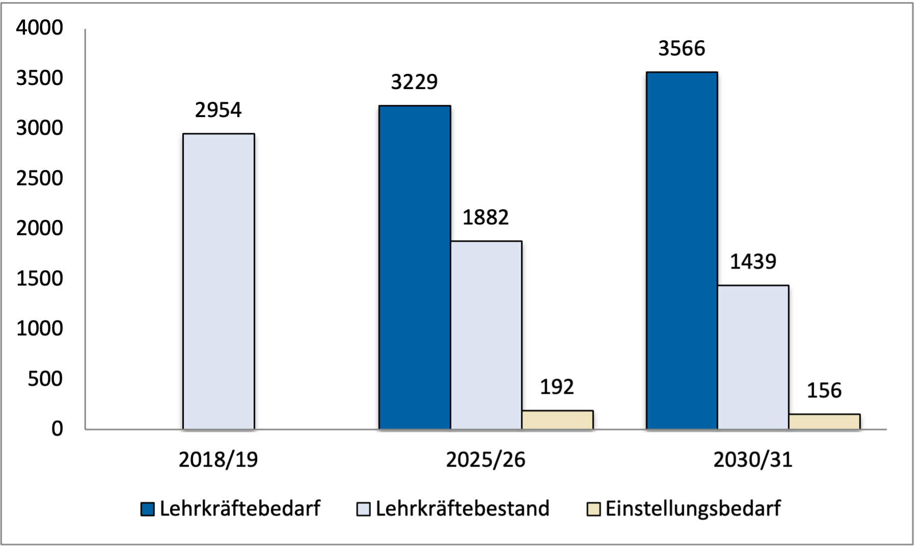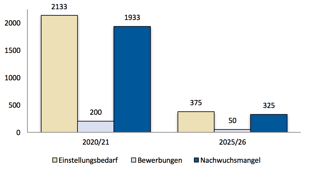 Abbildung 1: Entwicklung des Lehrkräftebedarfs für das Fach Technik in Personen für die Jahre 2025/26 und 2030/31