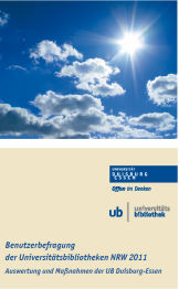 Die UB führte im Herbst 2011 – gemeinsam mit anderen Universitätsbibliotheken in NRW – eine Benutzerumfrage zu ihren Dienstleistungen durch. Ziele der inzwischen 3. landesweiten Umfrage waren: eine Beurteilung lokaler Services, eine Erhebung der Nutzererwartungen, und: Trends zu identifizieren. In Duisburg-Essen haben sich über 5.400 Benutzer/innen an der Umfrage beteiligt – mehr als an allen anderen Universitätsbibliotheken im Land. Vielen Dank für Ihr großes Interesse an den Dienstleistungen der UB!