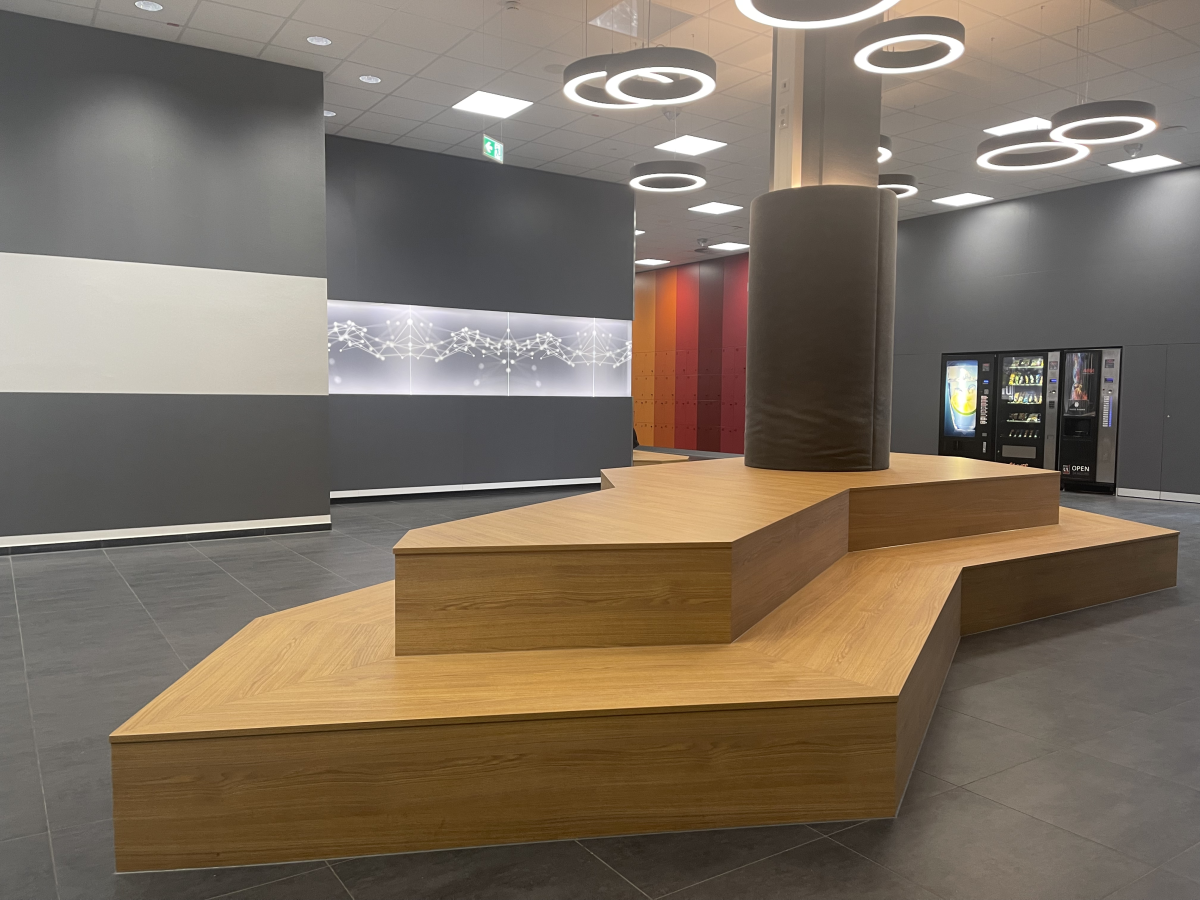 Die Neugestaltung habe einen Raum geschaffen, der nicht nur zum Verweilen einlade, sondern auch ein interessanter Ort für den Austausch von Ideen sei, so Meinen. „Zugleich wurde Flexibilität in der Nutzung der Flächen erreicht und so auf die sich wandelnden Anforderungen von Studium und Lehre reagiert. Diese Flexibilität spiegelt den Geist unserer Zeit mit hybriden Lern- und Lehrmethoden wider“. Die Direktorin der Bibliothek, Nicole Walger, betonte, wie positiv gerade das neue Foyer von den Bibliotheksnutzer:innen aufgenommen wird: „Dieser Ort ist funktional, aber vor allen Dingen auch einladend. Es ist immer viel los – Studierende treffen sich hier, verbringen gemeinsam Pausenzeiten oder arbeiten sogar mit ihren PCs auf den neuen Sitzlandschaften.“