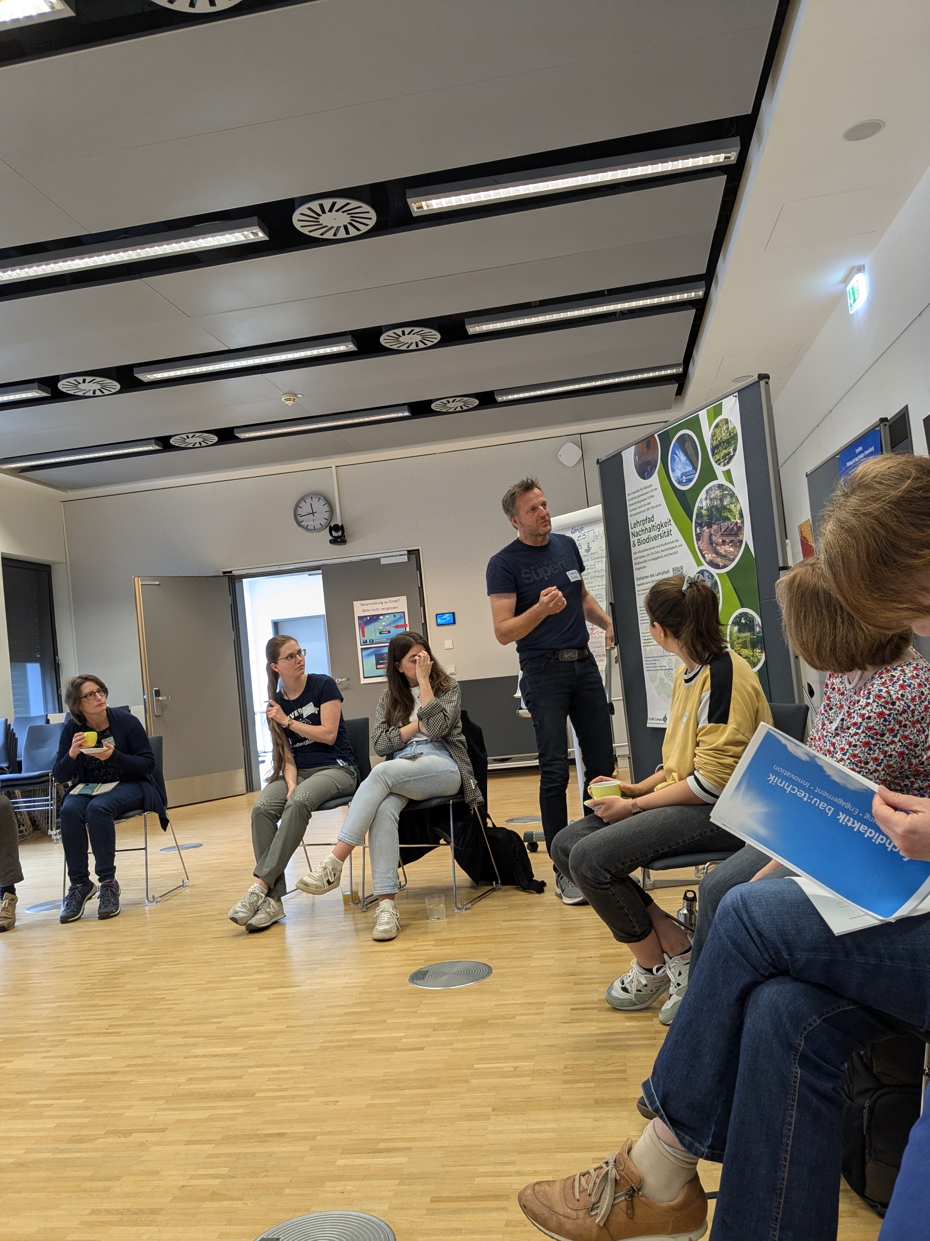 Im Mittelpunkt standen die Themen „Nachhaltigkeit in der Lehre“ und „Lehrpfad Grün: Biodiversität und Nachhaltigkeit am Campus Essen“. Moderiert von Barbara König und Annemarie Bloch (beide Informatik) sowie Christian Karl (Ingenieurwissenschaften) tauschten sich die Teilnehmer:innen über ihre Gesuche, Fragen und Wünsche sowie ihre Angebote, Ideen und Potential zum Thema Nachhaltigkeit in der Lehre aus. Die vielfältigen Hintergründe der Teilnehmer:innen boten diverse Ansätze, die zur Gründung einer themenbezogenen AG führten, die konkrete Möglichkeiten der transdisziplinären Einbindung von Nachhaltigkeit in Lehrveranstaltungen erarbeiten will.