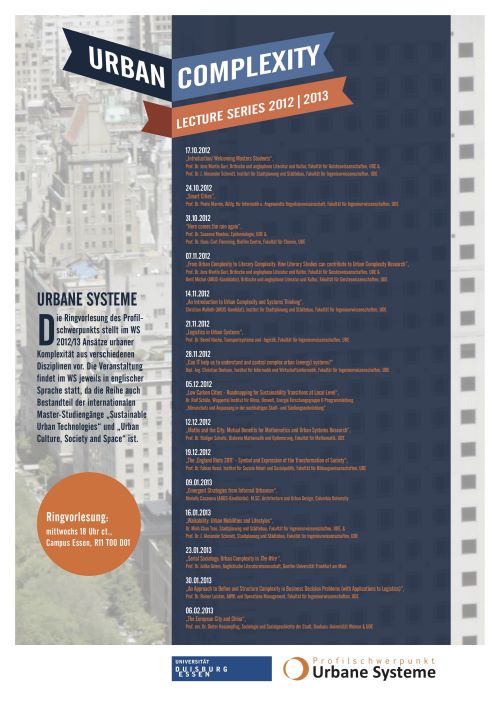 The lecture series of the Main Research Area „Urban Systems“ continued in winter term 2012/2013.