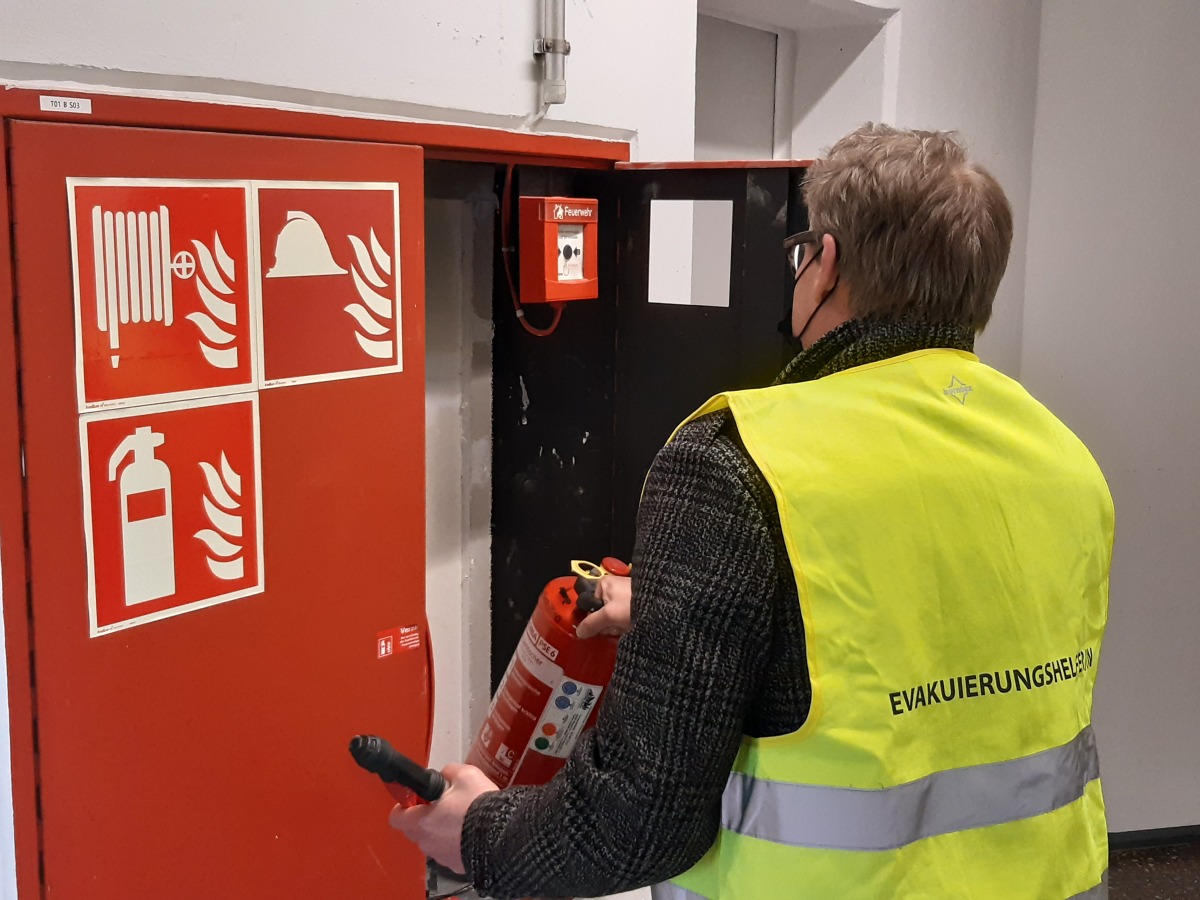 Fire safety and evacuation assistants are there to make sure everything runs smoothly in case of an emergency at the University. Their duty is to support the Fire Safety Officer in matters relating to fire prevention, to fight fires and to assist in the evacuation of the individuals present. The required number is established as a result of the risk assessment. If the risk of fires is normal, e.g. in office contexts, at least 5% of staff must be trained as fire safety and evacuation assistants.