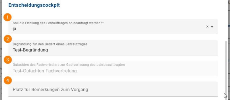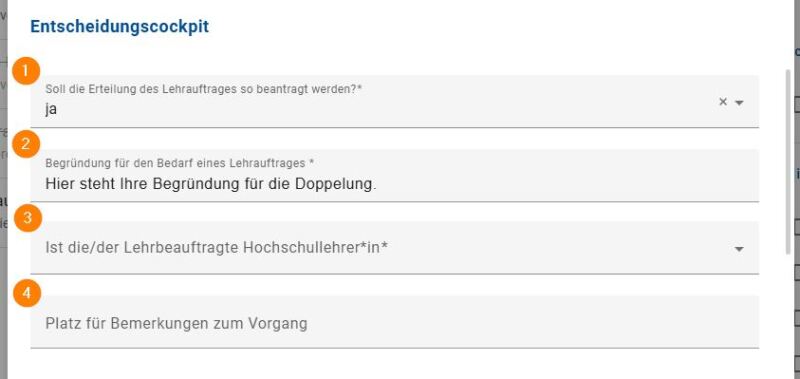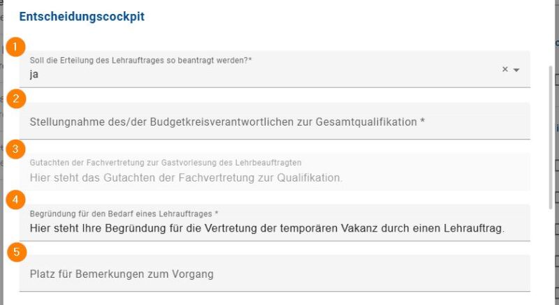 Das Feld entfällt, wenn es sich um eine*n Hochschullehrer*in handelt und dies durch die/den Budgetverantwortliche*n entsprechend vorher angegeben wurde.