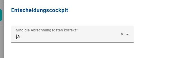 Die weiteren Informationen und Entscheidungen im sogenannten Entscheidungscockpit richten sich nach dem Fortschritt im Prozess und Ihrer Rolle. Wählen Sie entsprechend bitte weiter unten unter dem Punkt Entscheidungscockpits aus, ob es sich um eine Erteilung oder eine Abrechnung handelt und welche Rolle Sie einnehmen.