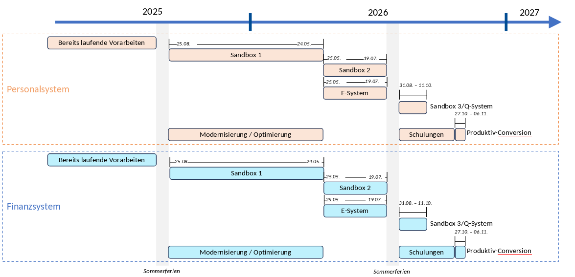 Ursprünglich sollte die Konvertierung im Finanzsystem zu einem späteren Zeitpunkt als im Personalsystem erfolgen (s. Präsentationsfolien Online Veranstaltung, S. 25).