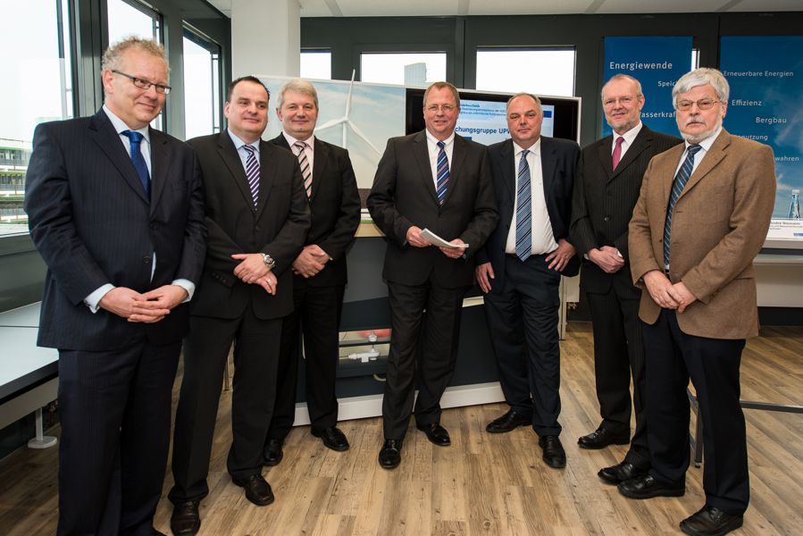 Seit bereits zwei Jahren beschäftigt sich das Institut in Zusammenarbeit mit verschiedenen Lehrstühlen der Universitäten Duisburg-Essen und Bochum sowie dem Bergbauunternehmen RAG mit den Möglichkeiten zur Realisierung untertägiger Pumpspeicherkraftwerke. Im Zuge der Umsetzung der Energiewende werden zusätzliche Energiespeicher benötigt; ihr genauer Einsatzbereich sowie weitere Details hierzu müssen noch geklärt werden. Dazu erhält die Forschergruppe „UPW“ nun eine Förderung durch das nordrhein-westfälische Ministerium für Klimaschutz, Umwelt, Landwirtschaft, Natur- und Verbraucherschutz. Am 23.11.2012 wurde der Förderbescheid durch den NRW Staatssekretär im Umweltministerium Udo Paschedag an der Universität Duisburg-Essen übergeben.