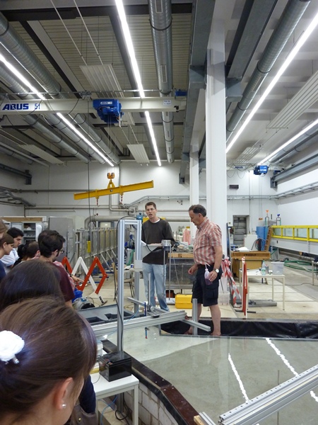 Der Zweite Teil der Exkursion führte zur Versuchsanstalt und Prüfstelle für Umwelttechnik und Wasserbau der Universität Kassel. Die wasserbauliche Versuchshalle beinhaltet u.a. folgende Versuchsstände: