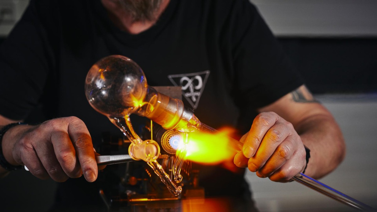 Die Arbeit mit Glas erfordert absolute Konzentration. Bei über 1.000 Grad entstehen in der offenen Flamme maßgeschneiderte Lösungen für die Wissenschaft, Forschung und Lehre. Eine kleine Abweichung kann über Erfolg oder Misserfolg eines Experiments oder einer Lehrveranstaltung entscheiden. In der Glasbläserei der UDE ist jedes Detail entscheidend.