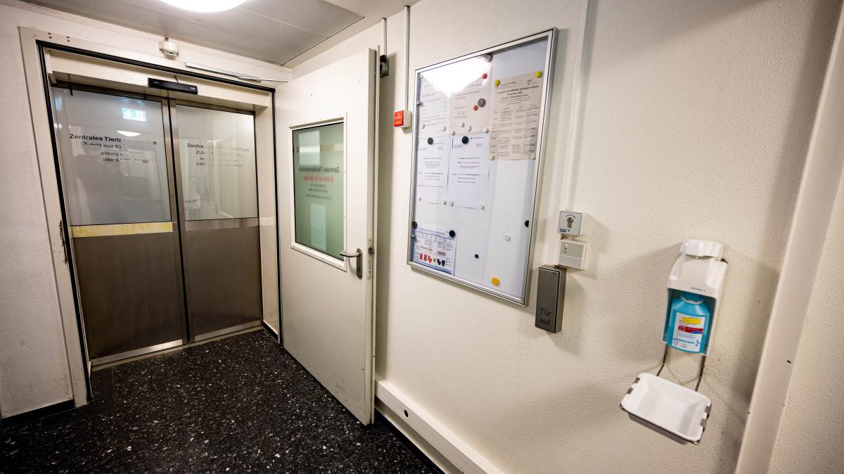 Der Zutritt zu den Tierhaltungsbereichen ist nur dem ZTL-Personal und den berechtigten Forschenden gestattet. Vor dem Betreten der Tierhaltung wechseln Tierpfleger:innen ihre Kleidung, um eine Einschleppung von Krankheitserreger zu verhindern. Die Handdesinfektion vor dem Betreten der Tierhaltung ist für alle verpflichtend.