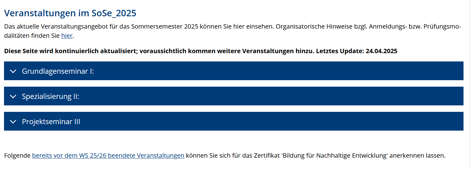 In LSF finden Sie die Veranstaltungen unter den jeweiligen Überschriften: