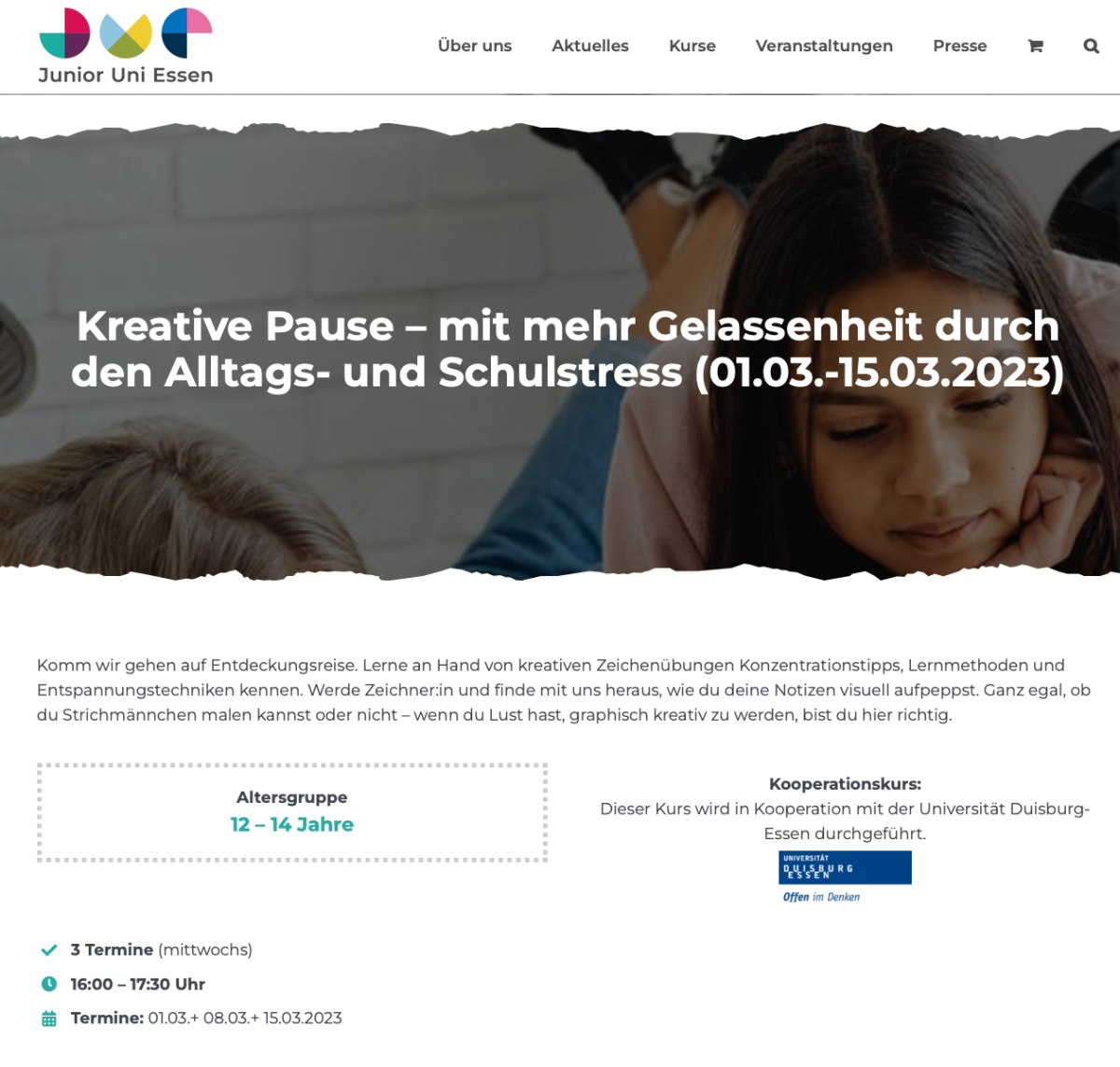 Outreach activity | Kreative Pause – mit mehr Gelassenheit durch den Alltags- und SchulstressENTRANTS@JUNIOR UNI