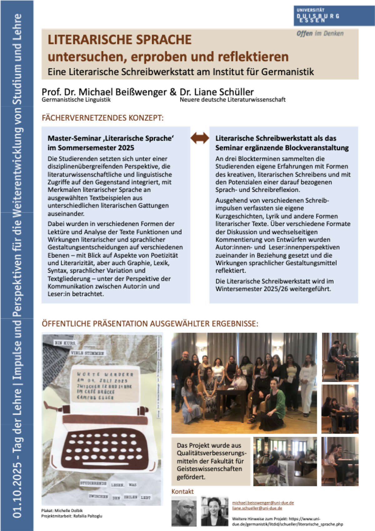 Prof. Dr. Michael Beißwenger und Dr. Liane SchüllerLiterarische Sprache untersuchen, erproben und reflektieren – Eine Literarische Schreibwerkstatt am Institut für Germanistik