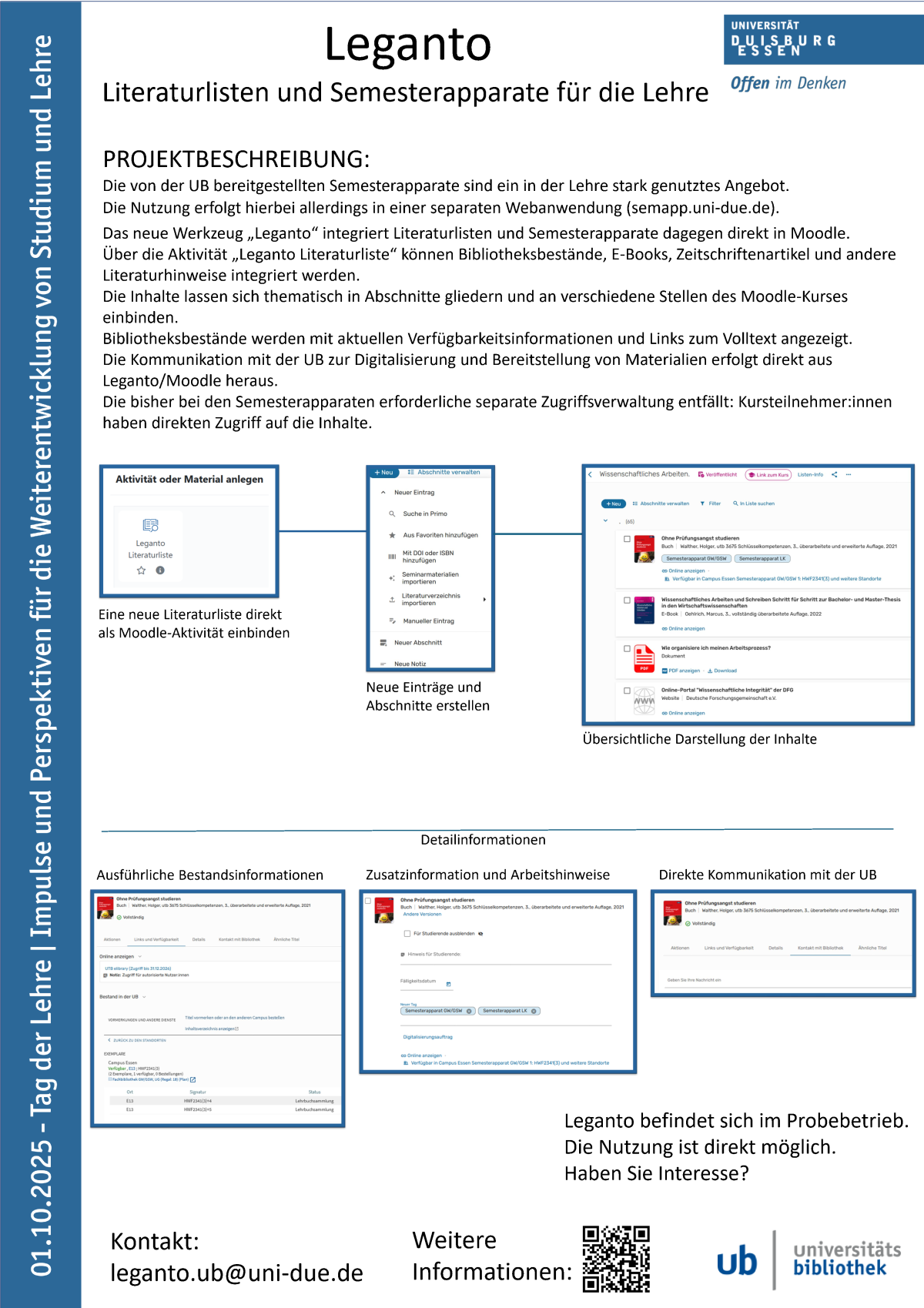 Weitere Informationen: https://www.uni-due.de/ub/leganto.php