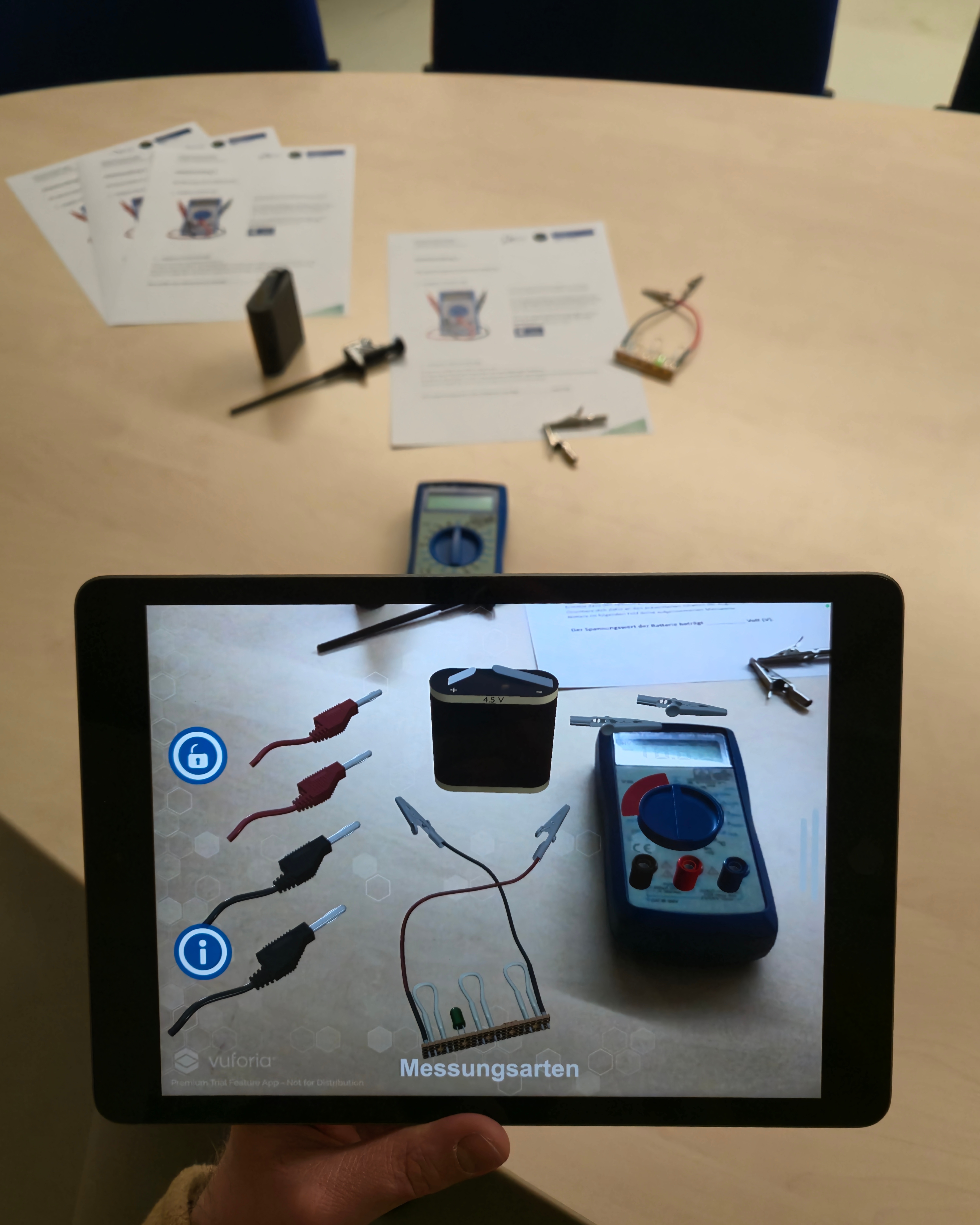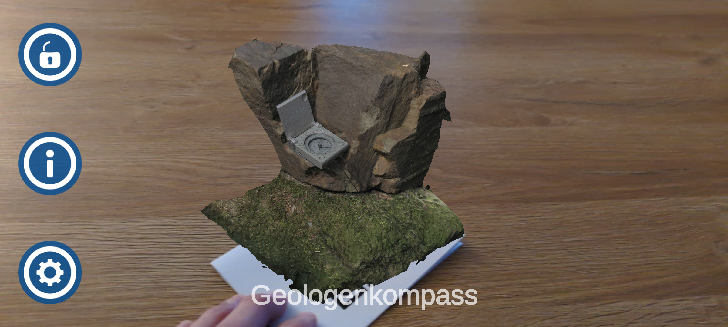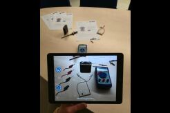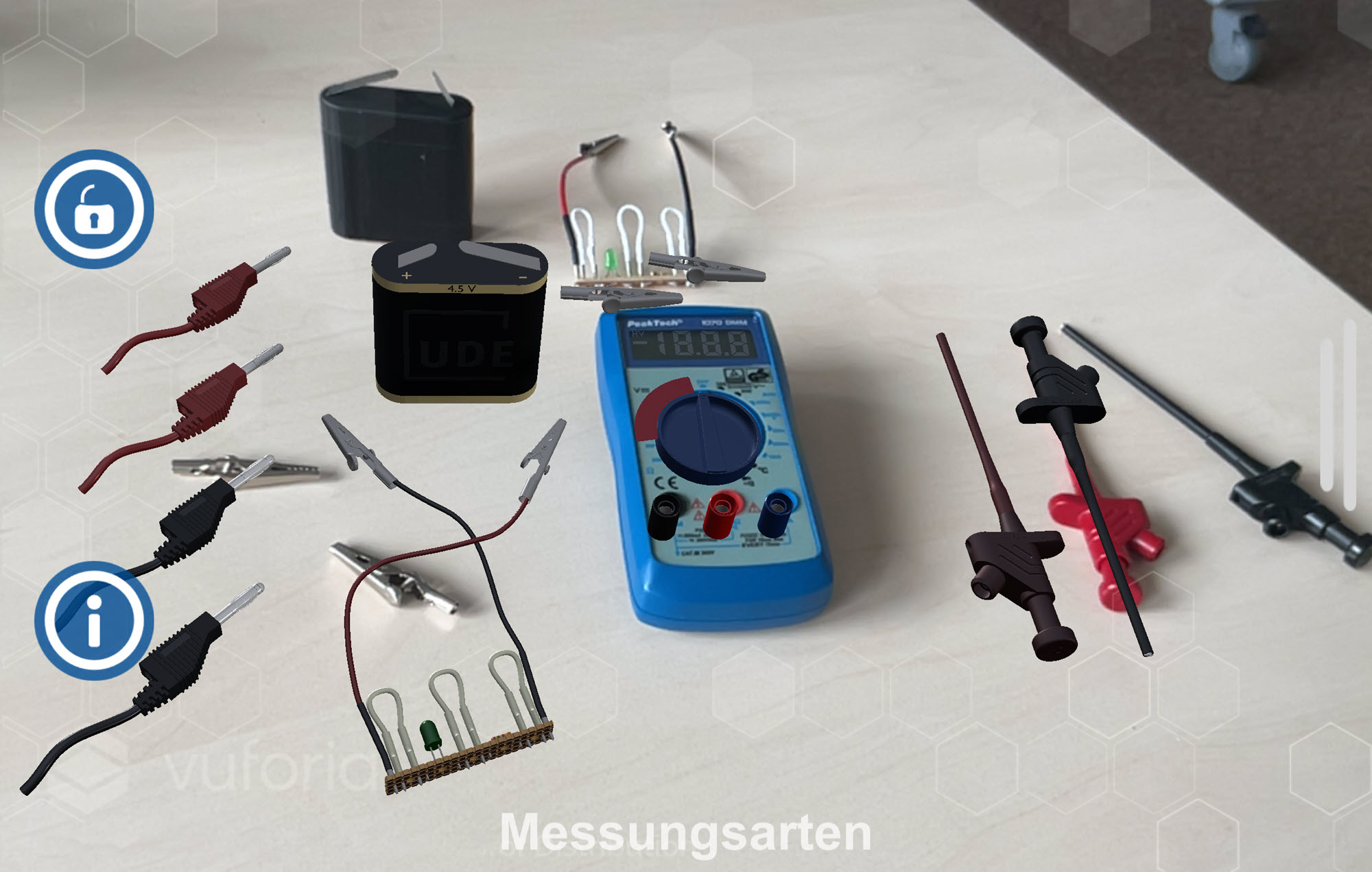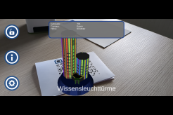 Lizenzhinweise zu den Abbilungen, entsprechend deren Darstellungsreihenfolge: Andreas Erkelenz / TuD (Abb.1), Mirco Zick / ZIM (Abb. 2 + 3), Jana Gajewski / ZIM (Abb. 4 + 5 + 6), Lars W. Steinhoff / UDE (Abb. 7 + 8 + 9). Die Abbildungen 10, 12 und 15 zeigen das sogenannte Model Target und Abbildung 11 das QR-Code-Target. Einen Einblick in die App zeigen die Abbildungen 13 und 14. Auf dem letztgenannten Screenshot ist die Auswahl verschiedener Animationsszenen zu sehen.