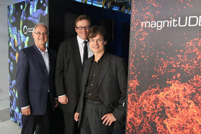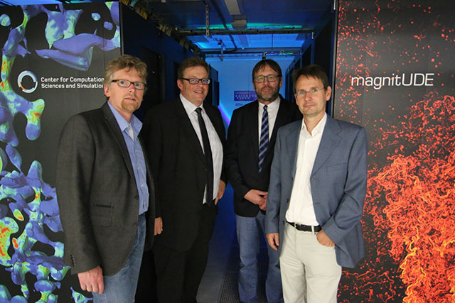 Informationen zum Hochleistungsrechner magnitUDE und Links zu Presseveröffentlichungen anlässlich der Einweihung des Serverraumes finden Sie unter https://www.uni-due.de/ccss/magnitude_main.php