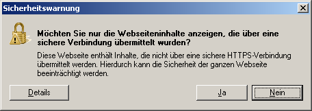 Zur Lösung des Problems wählen Sie bitte beim Erscheinen der Sicherheitswarnung „Nein“.