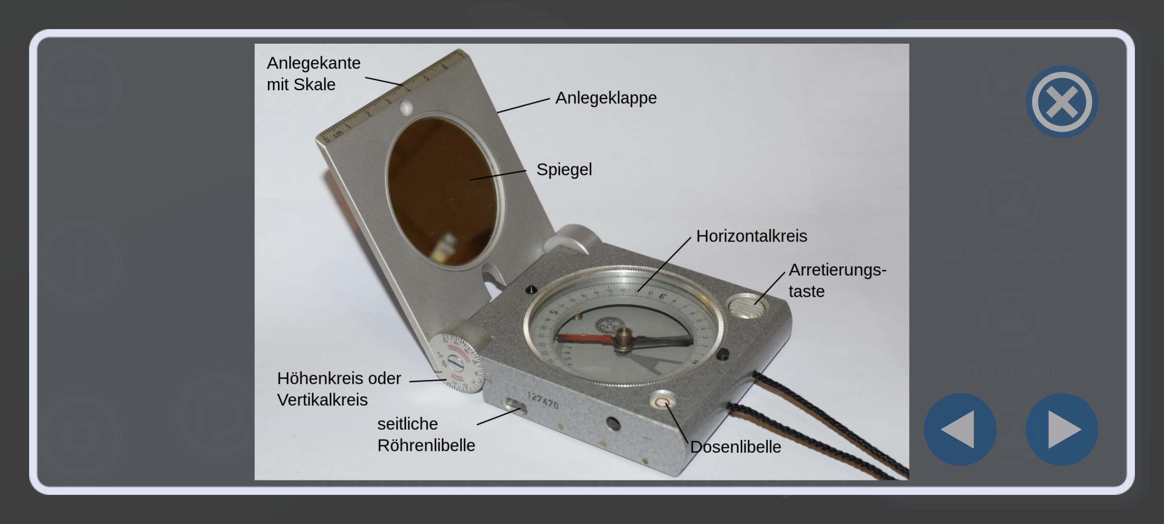Lizenzhinweise zu den Abbilungen, entsprechend deren Darstellungsreihenfolge: Andreas Erkelenz / TuD (Abb.1), Mirco Zick / ZIM (Abb. 2 + 3), Jana Gajewski / ZIM (Abb. 4 + 5 + 6), Lars W. Steinhoff / UDE (Abb. 7 + 8 + 9). Die Abbildungen 10, 12 und 15 zeigen das sogenannte Model Target und Abbildung 11 das QR-Code-Target. Einen Einblick in die App zeigen die Abbildungen 13 und 14. Auf dem letztgenannten Screenshot ist die Auswahl verschiedener Animationsszenen zu sehen.