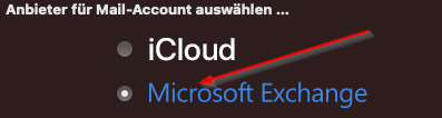 Wählen Sie „Microsoft Exchange“