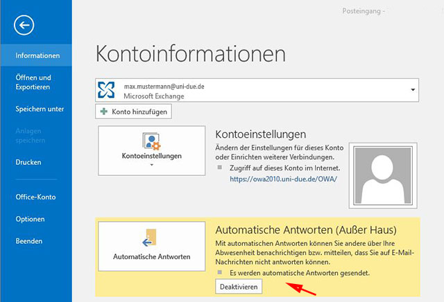 Abwesenheitsnachricht einrichten unter Outlook 2016