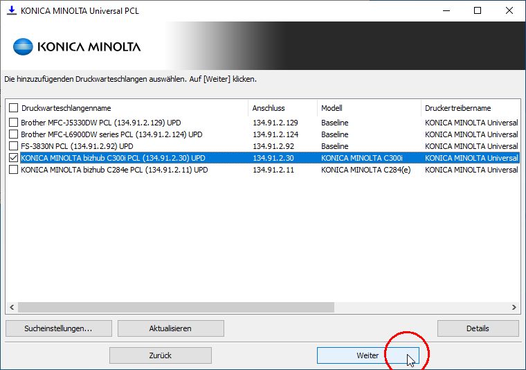 Wählen Sie den entsprechenden Drucker von KONICA Minolta: