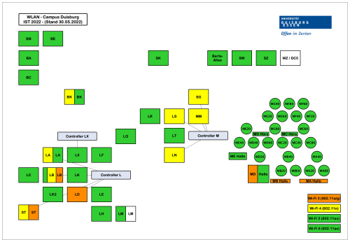 Neben der Modernisierung der Universitätseigenen Gebäude wird auch das WLAN in allen Anmietungen auf den aktuellen Stand gebracht. Hier sind die Arbeiten fast abgeschlossen.