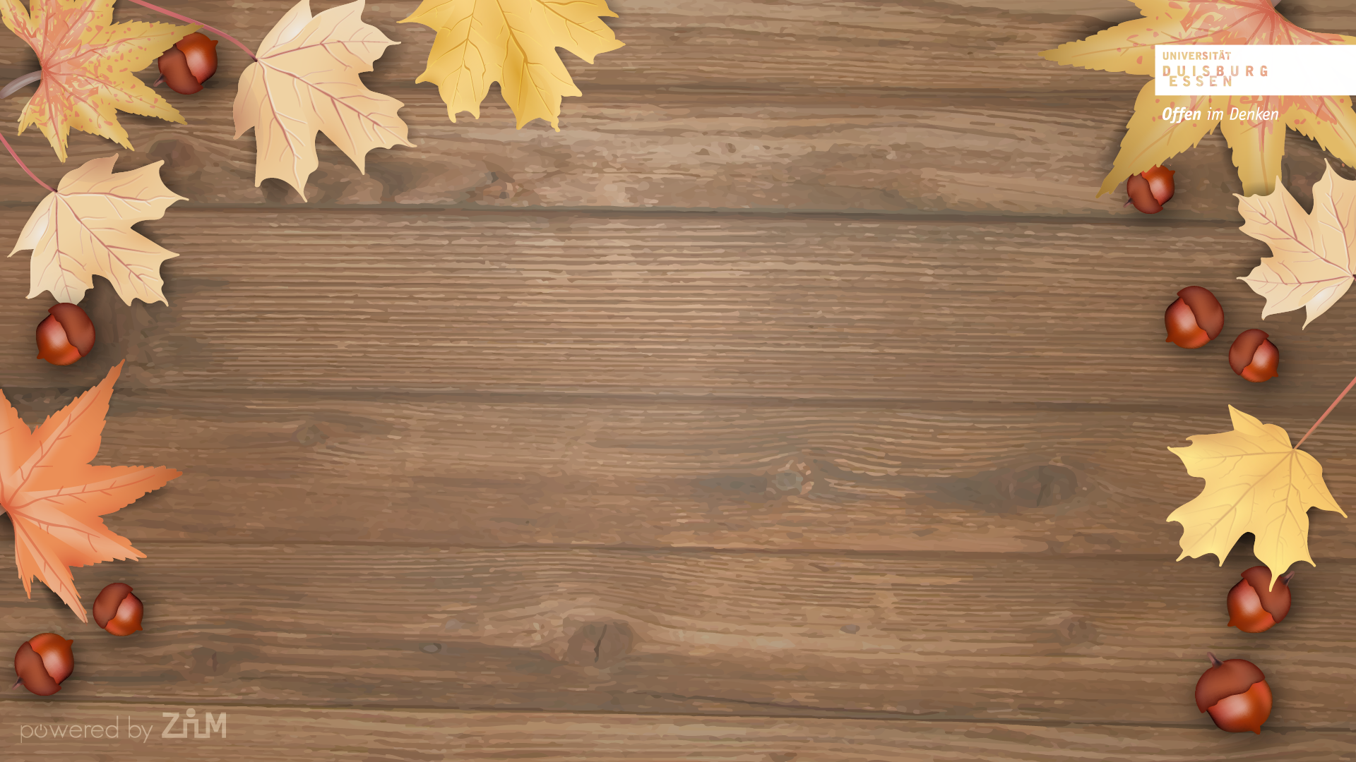 In ZOOM können Sie sich einen eigenen virtuellen Hintergrund einstellen. So können Sie z.B. Ihre Privatphäre im Homeoffice schützen. Das ZIM stellt Ihnen dazu folgende Hintergründe zur Verfügung. Klicken Sie auf das gewünschte Bild und speichern es. Anschließend fügen Sie es bei ZOOM über 'Einstellung - virtueller Hintergrund' als Hintergrundbild ein.