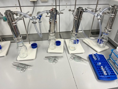 Abwasser ist eine komplexe und variable Matrix und erfordert einen robusten und effektiven Verarbeitungsprozess. Wir haben verschiedene Methoden der Nukleinsäurekonzentration getestet, z. B. Filtration mit Membranen unterschiedlicher Porengröße und Zentrifugation, um die Menge und Konsistenz der Proben zu erhöhen. Unser Ziel ist es, unser bestehendes Protokoll zu optimieren, um die Effizienz und Reproduzierbarkeit zu erhöhen und eine robuste Molekularanalyse im Anschluss zu gewährleisten. Zu den wichtigsten Überlegungen gehörten die Minimierung von PCR-Inhibitoren, die Erhaltung der Integrität der Nukleinsäuren und die Ermöglichung von Vergleichen zwischen verschiedenen Abwasserproben.